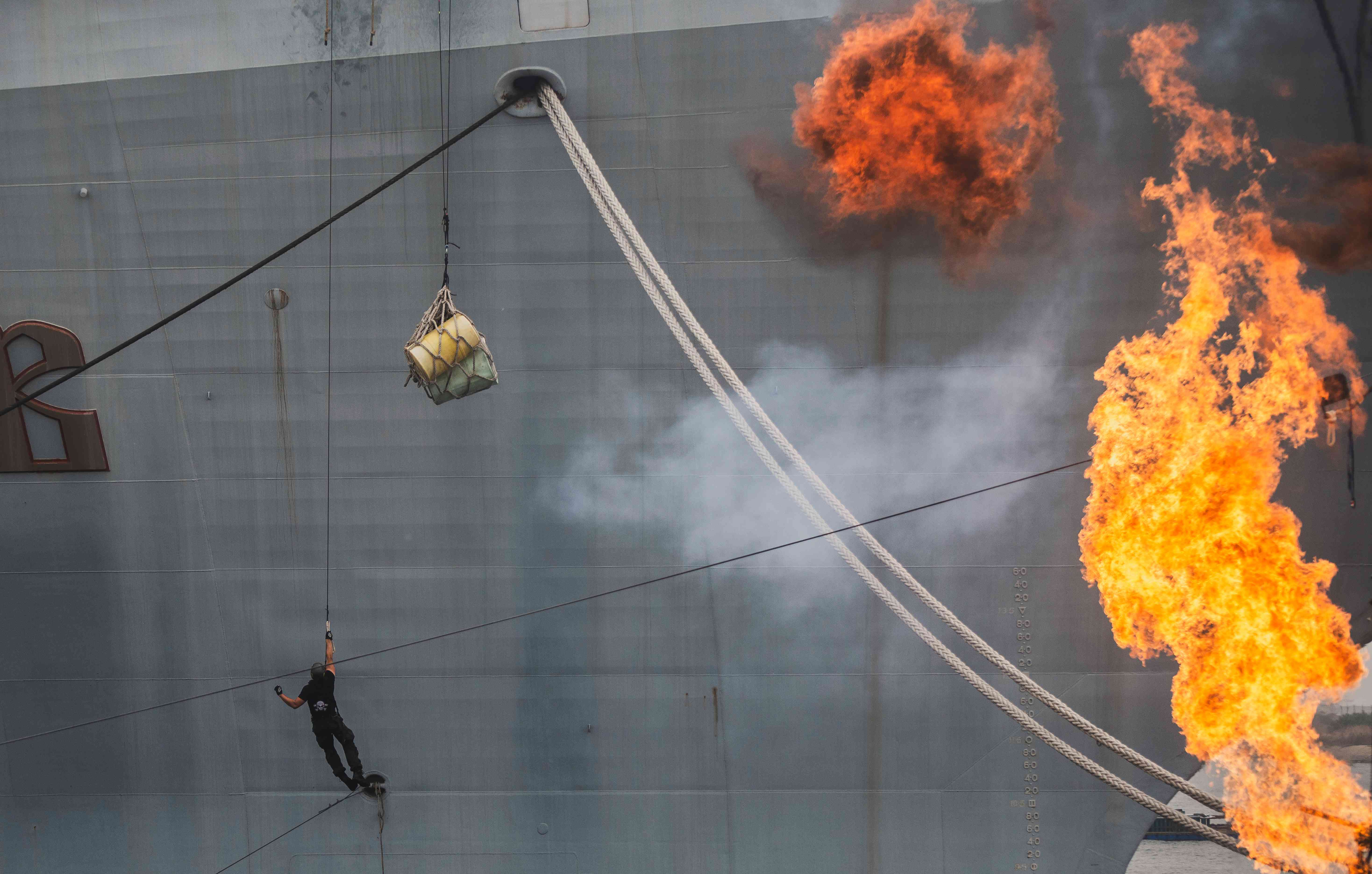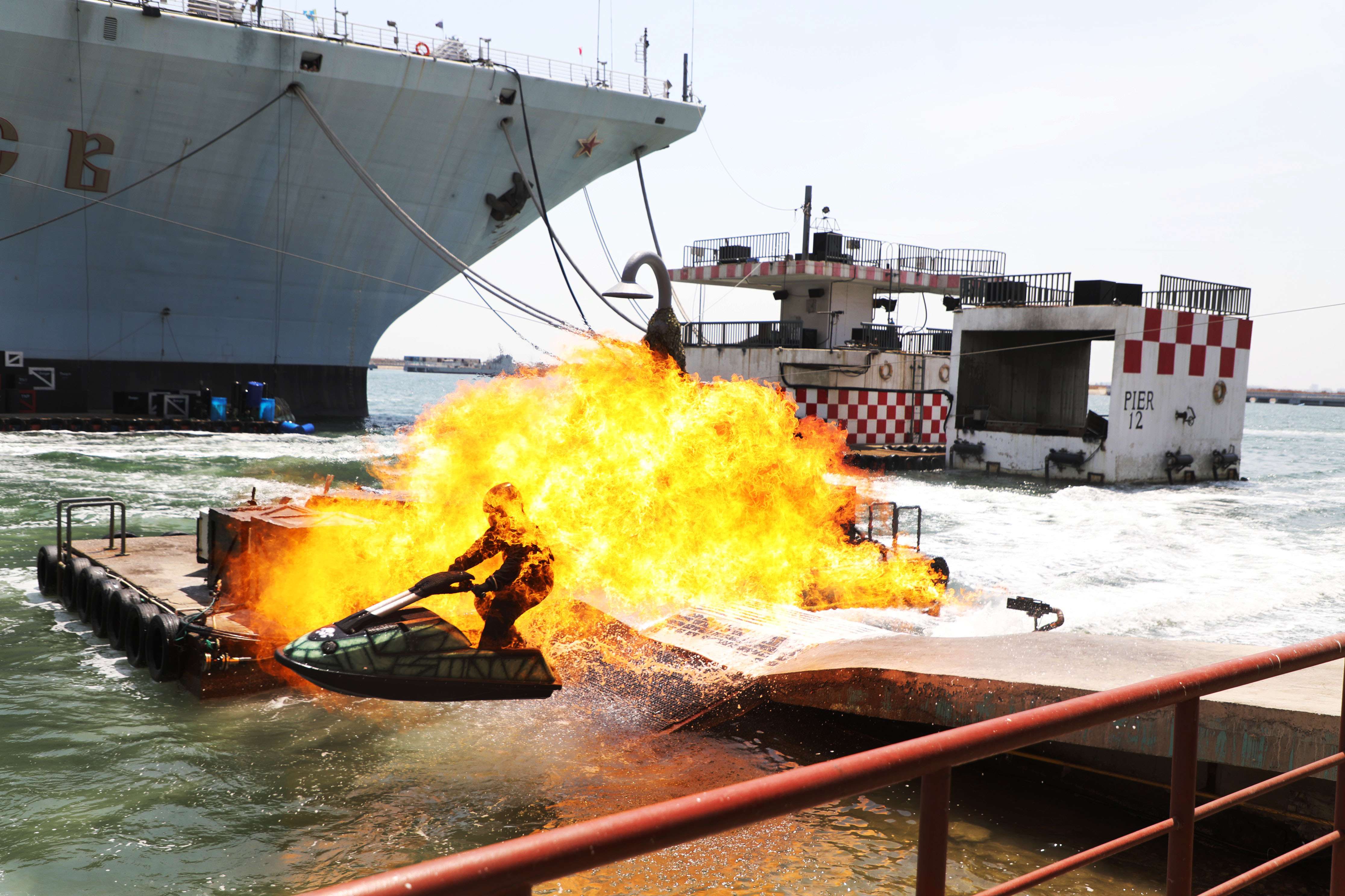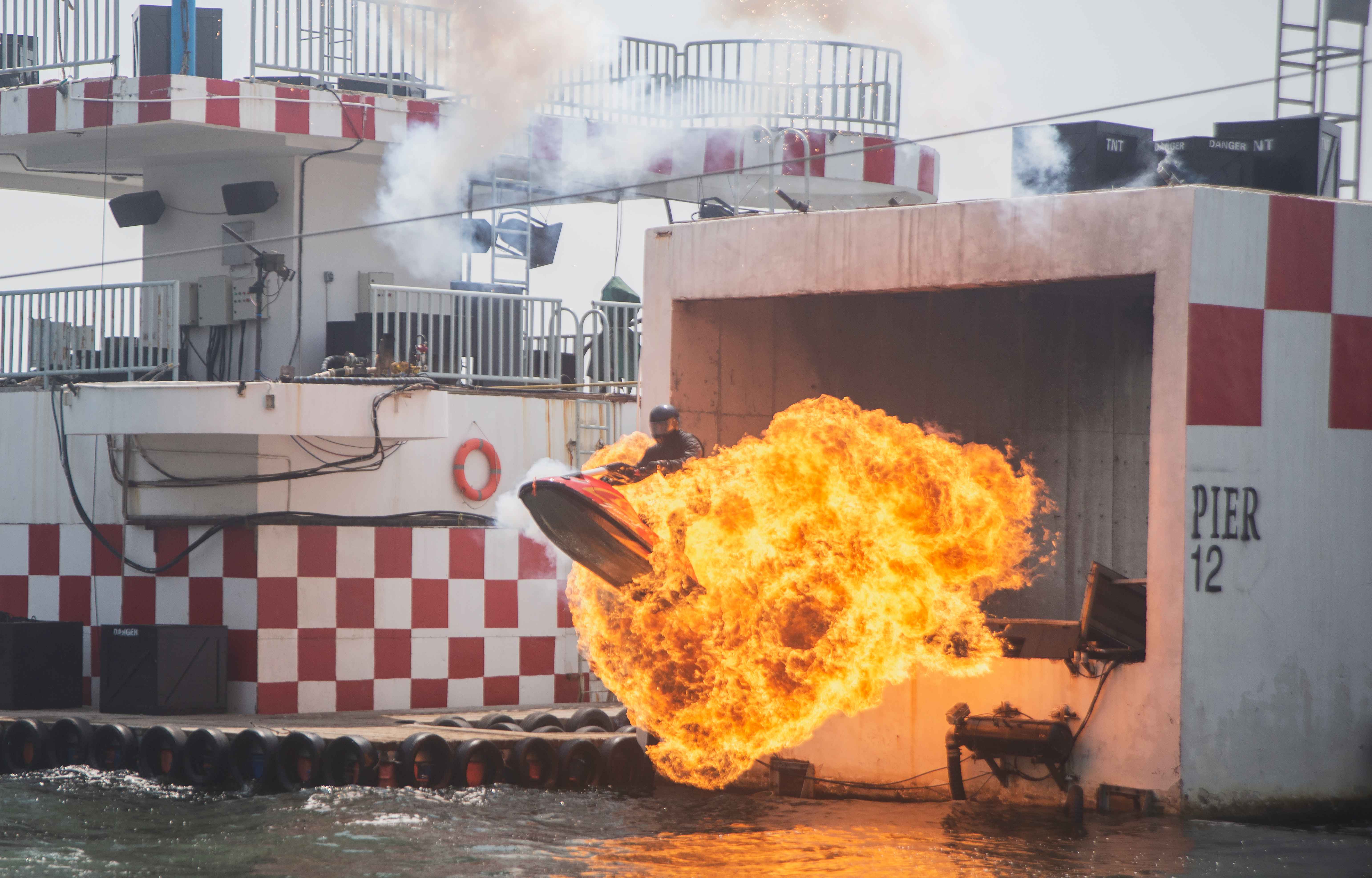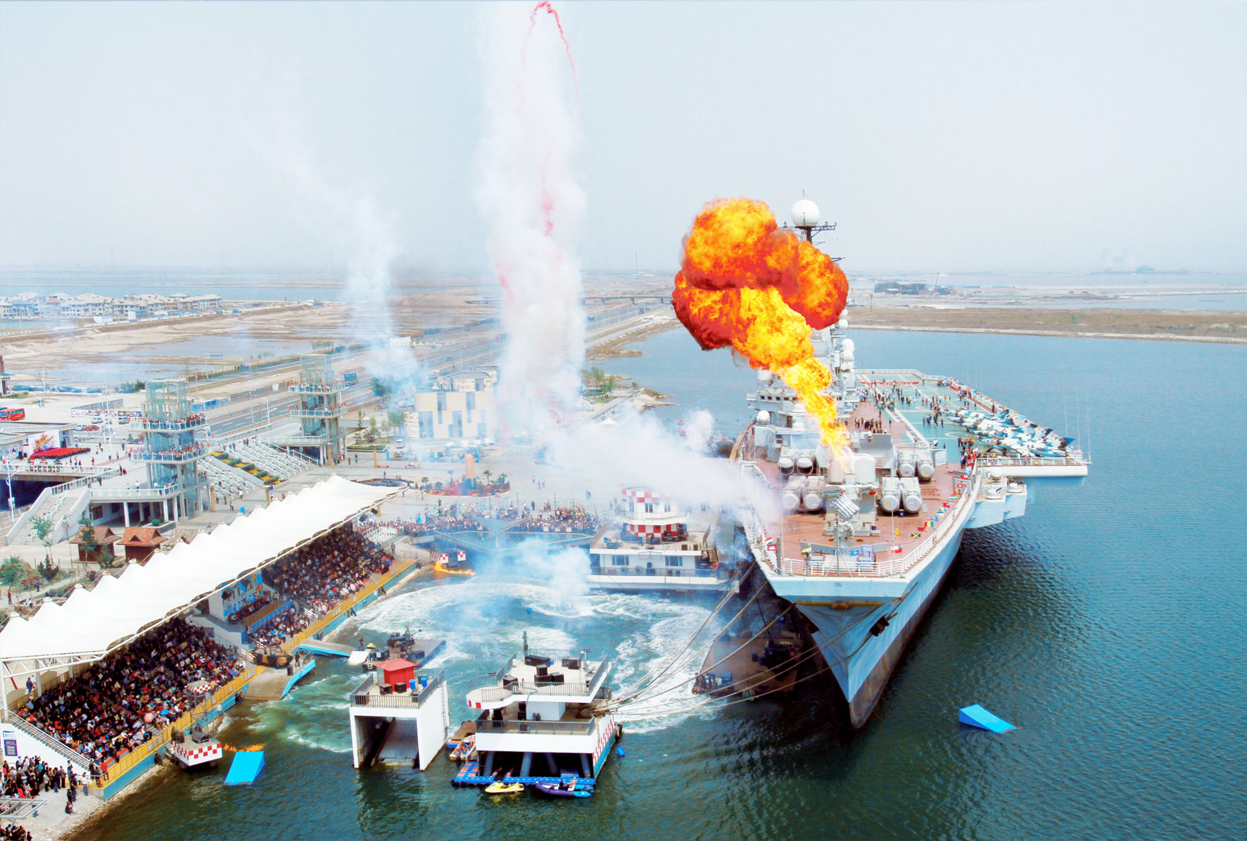 《航母風(fēng)暴》,是泰達(dá)航母打造的世界首部以真實(shí)航母為題材的大型實(shí)景海戰(zhàn)表演劇。該劇由好萊塢金牌班底制作,全球著名特技演員領(lǐng)銜,恢復(fù)并利用航母原有武備系統(tǒng),整場表演使用跳船、風(fēng)扇機(jī)船、海豚潛水艇、橡皮艇、水上飛行器等先進(jìn)道具,通過潛水、跳水、滑繩、速降、爆破等特技特效表演,為您震撼呈現(xiàn)現(xiàn)場版“國際大片”。該劇一經(jīng)推出,即受到游客熱烈追捧,現(xiàn)已成為航母公園的王牌節(jié)目。《航母風(fēng)暴》每年五月至十月上演。