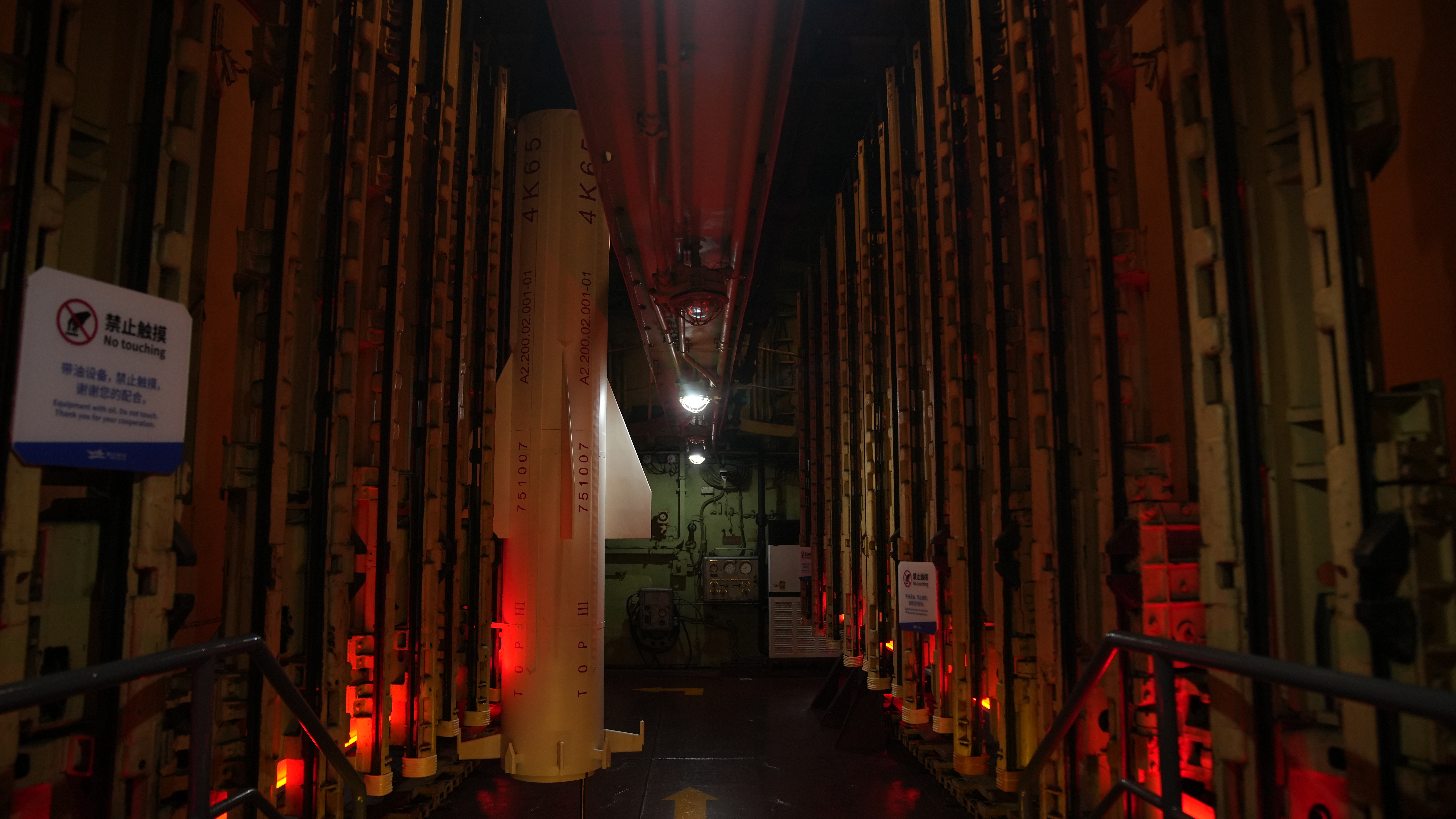 垂直貫穿于二甲、三甲,存放對空導彈。導彈置于可旋轉彈架,庫內自動裝彈機能自動向發射架裝填導彈,每3秒就可完成2枚導彈的裝填。